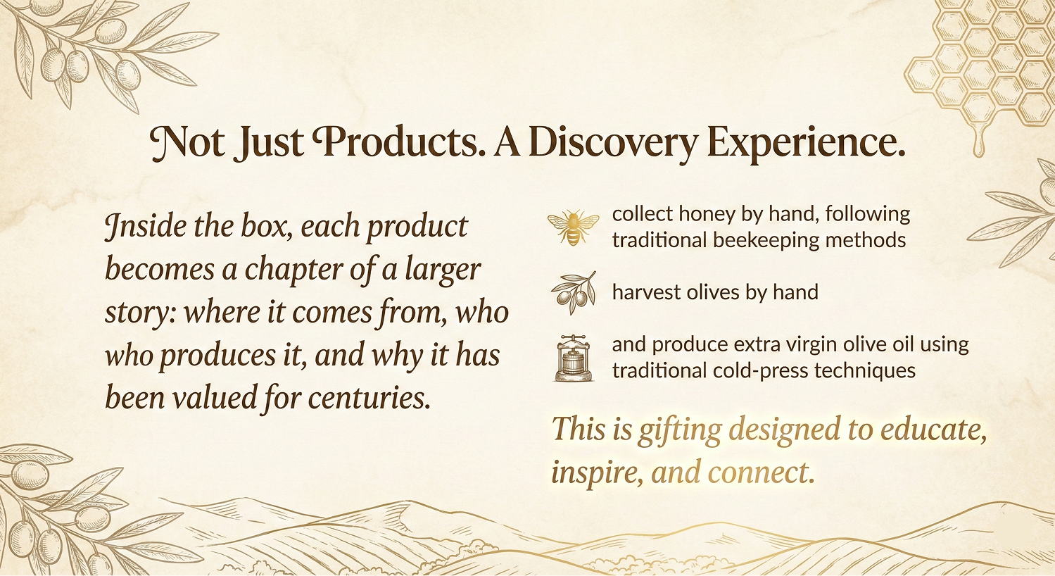 Inside the box, each product becomes a chapter of a larger story: where it comes from, who produces it, and why it has been valued for centuries.
